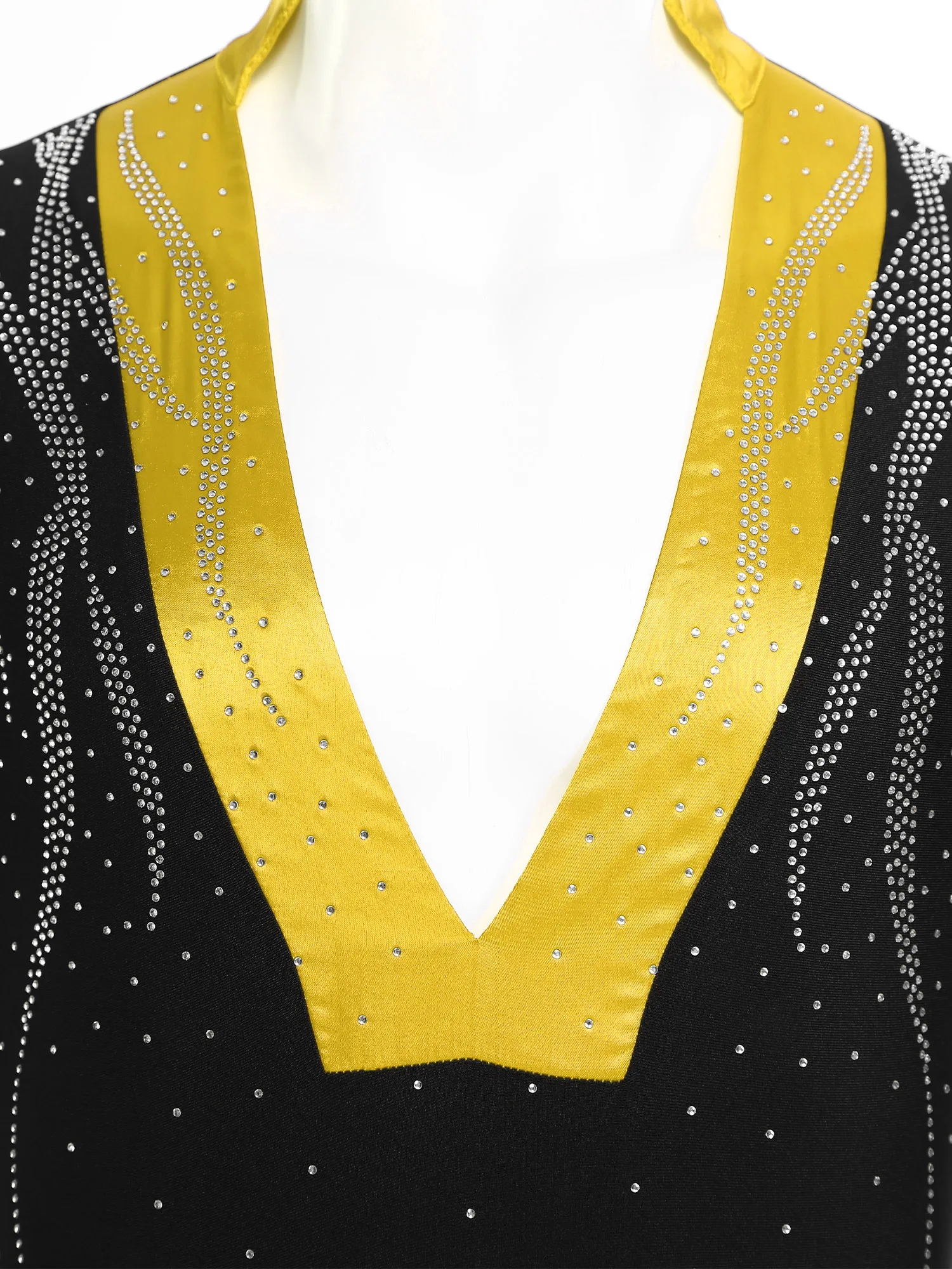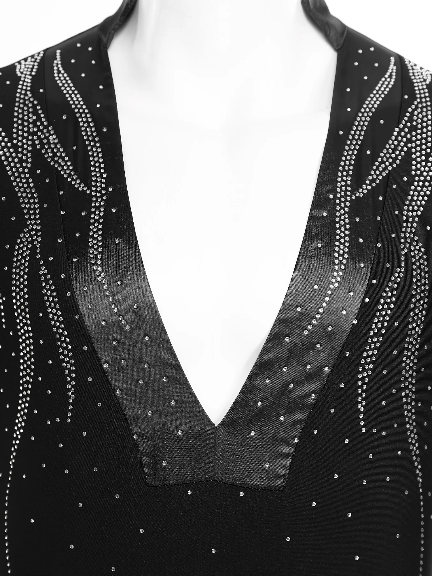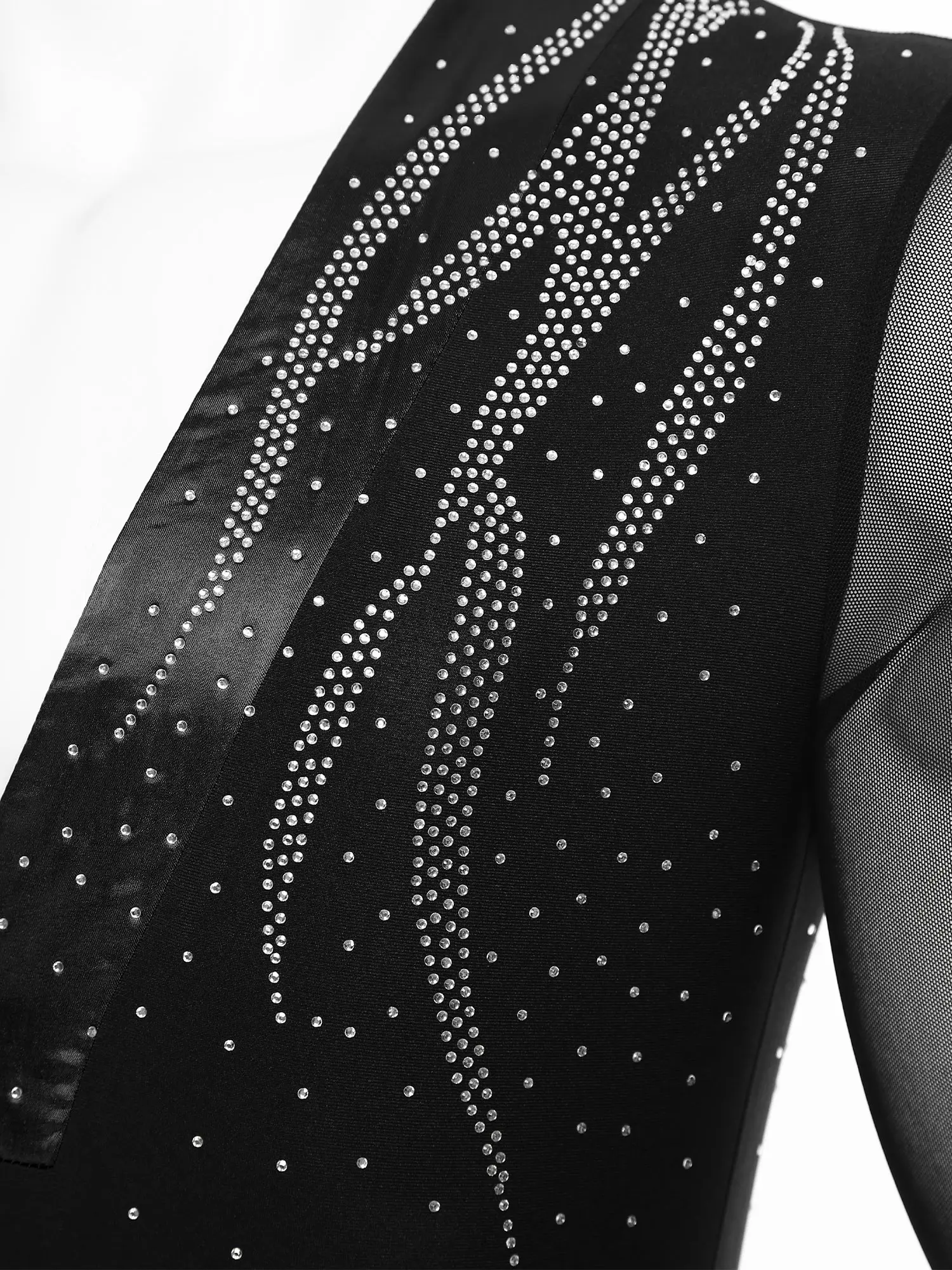 Color block design deep V-neck and decorative shiny rhinestones will create an eye-catching effect that will make you stand out in the show.