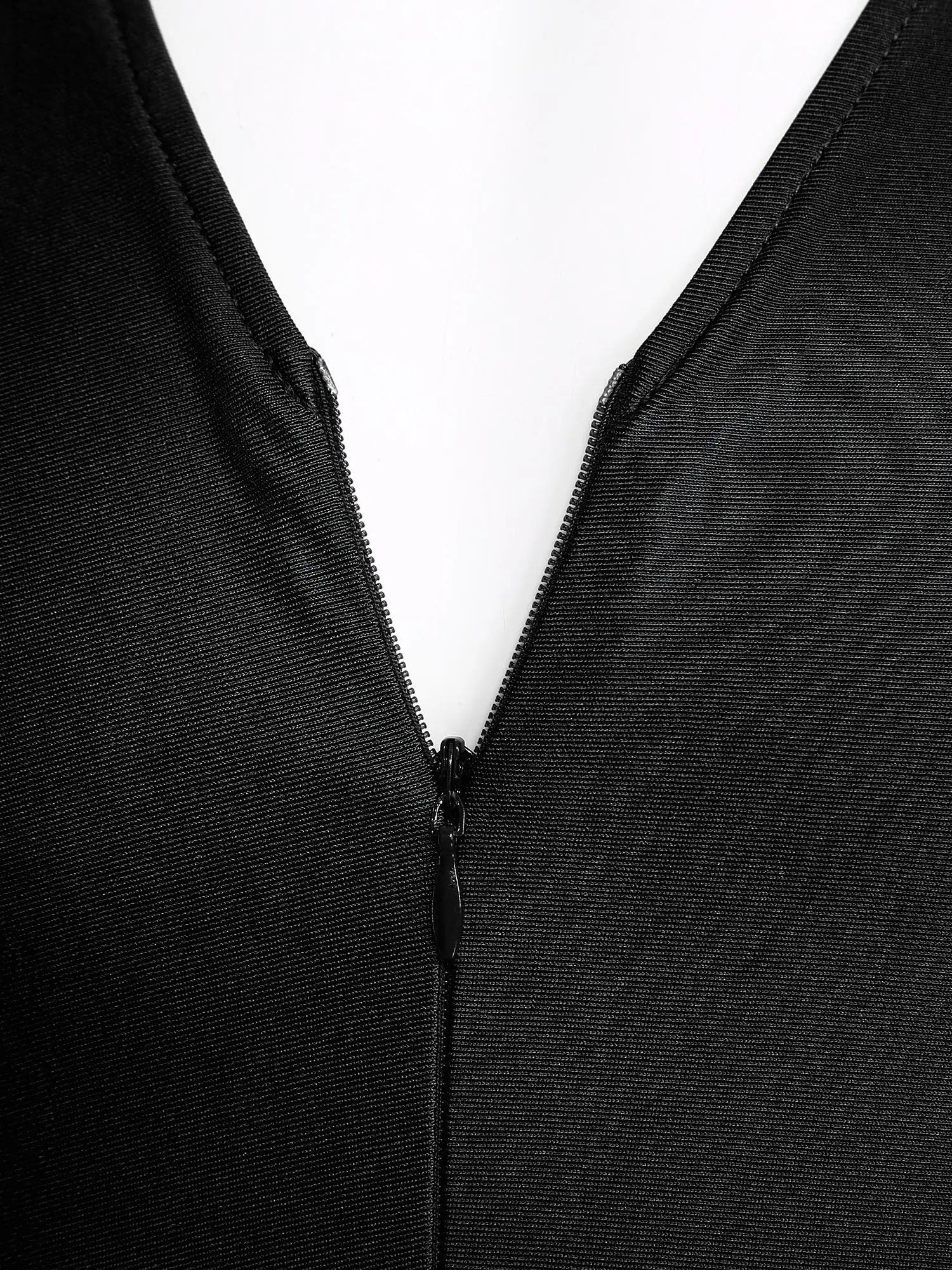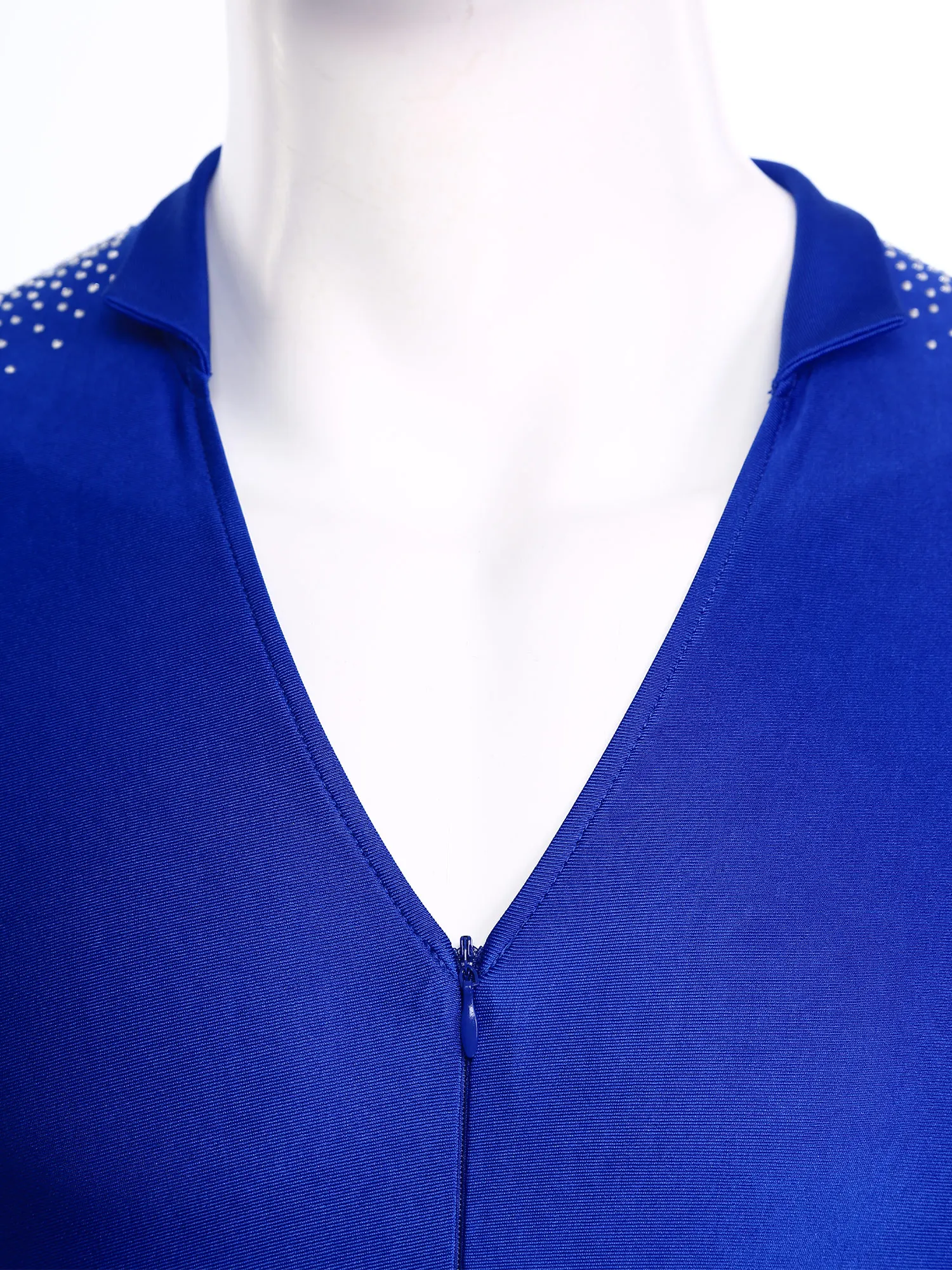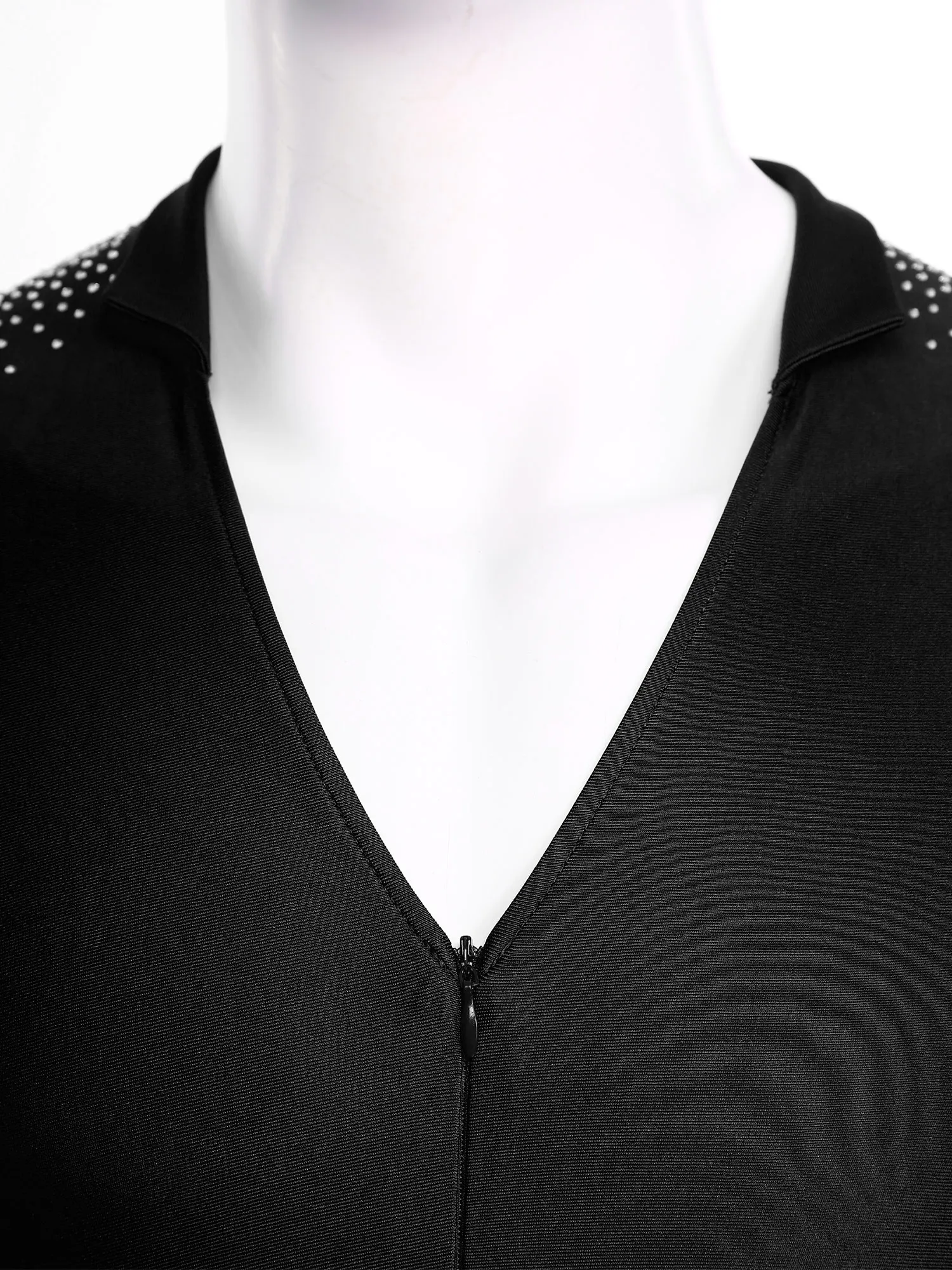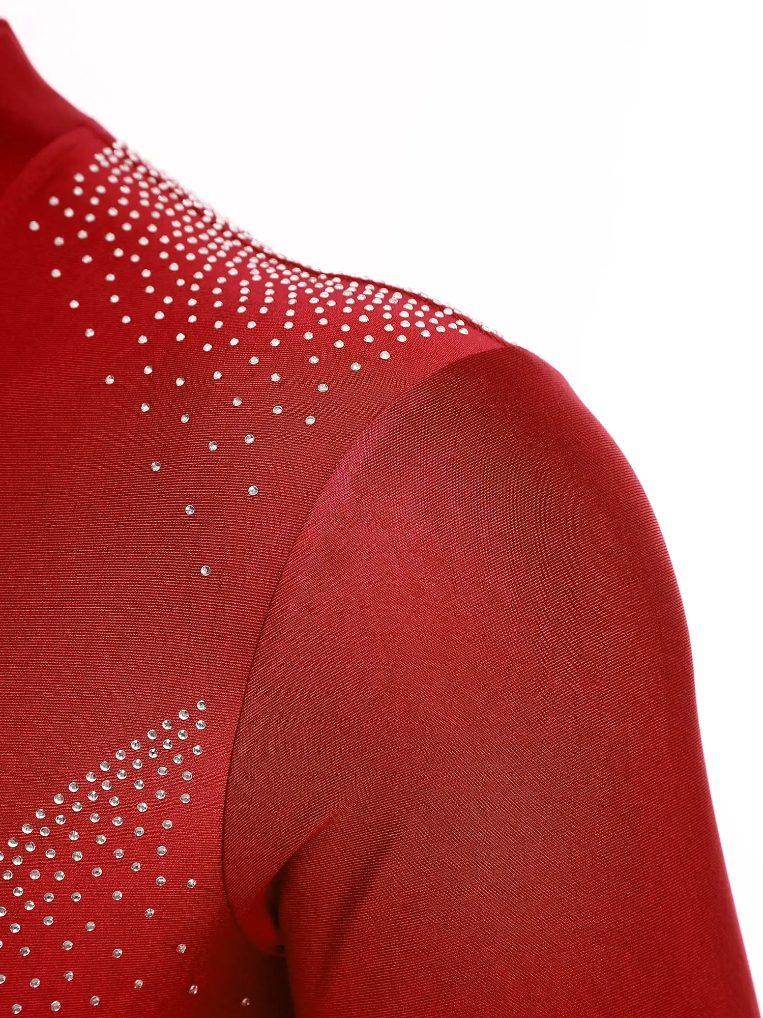 Color block design deep V-neck and decorative shiny rhinestones will create an eye-catching effect that will make you stand out in the show.