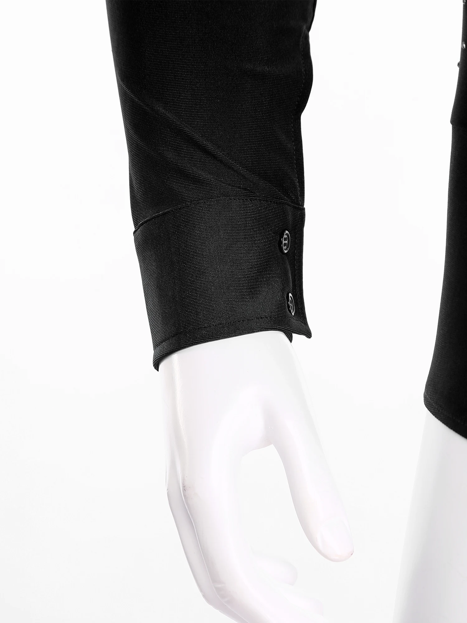 Long sleeve leotard with an invisible zipper at the front and press buttons at the crotch for easy wearing.