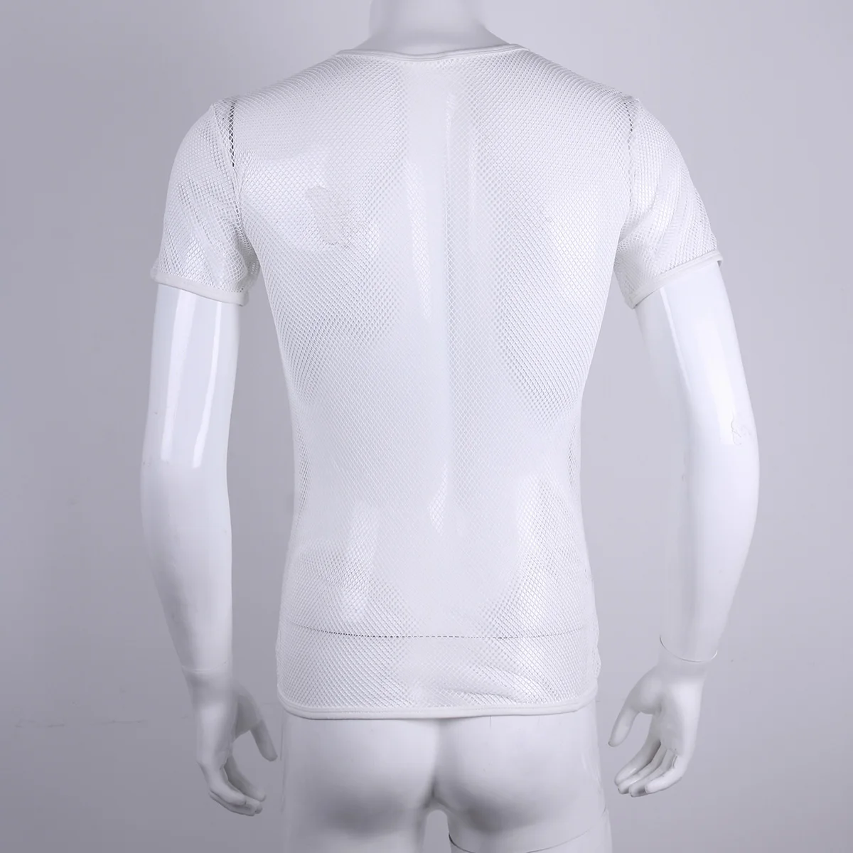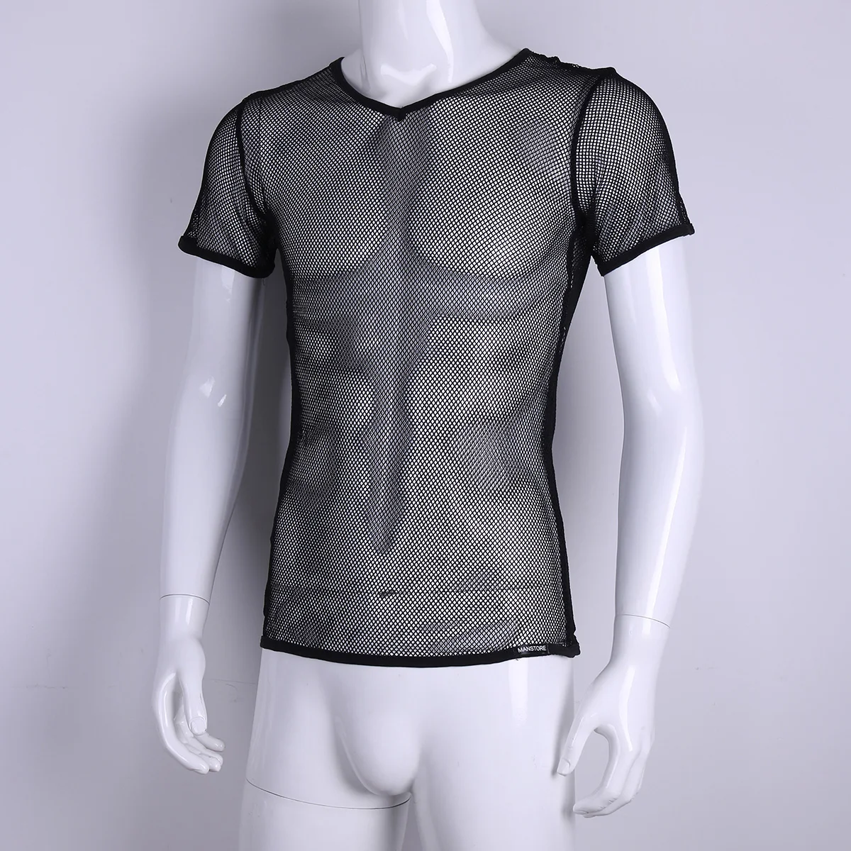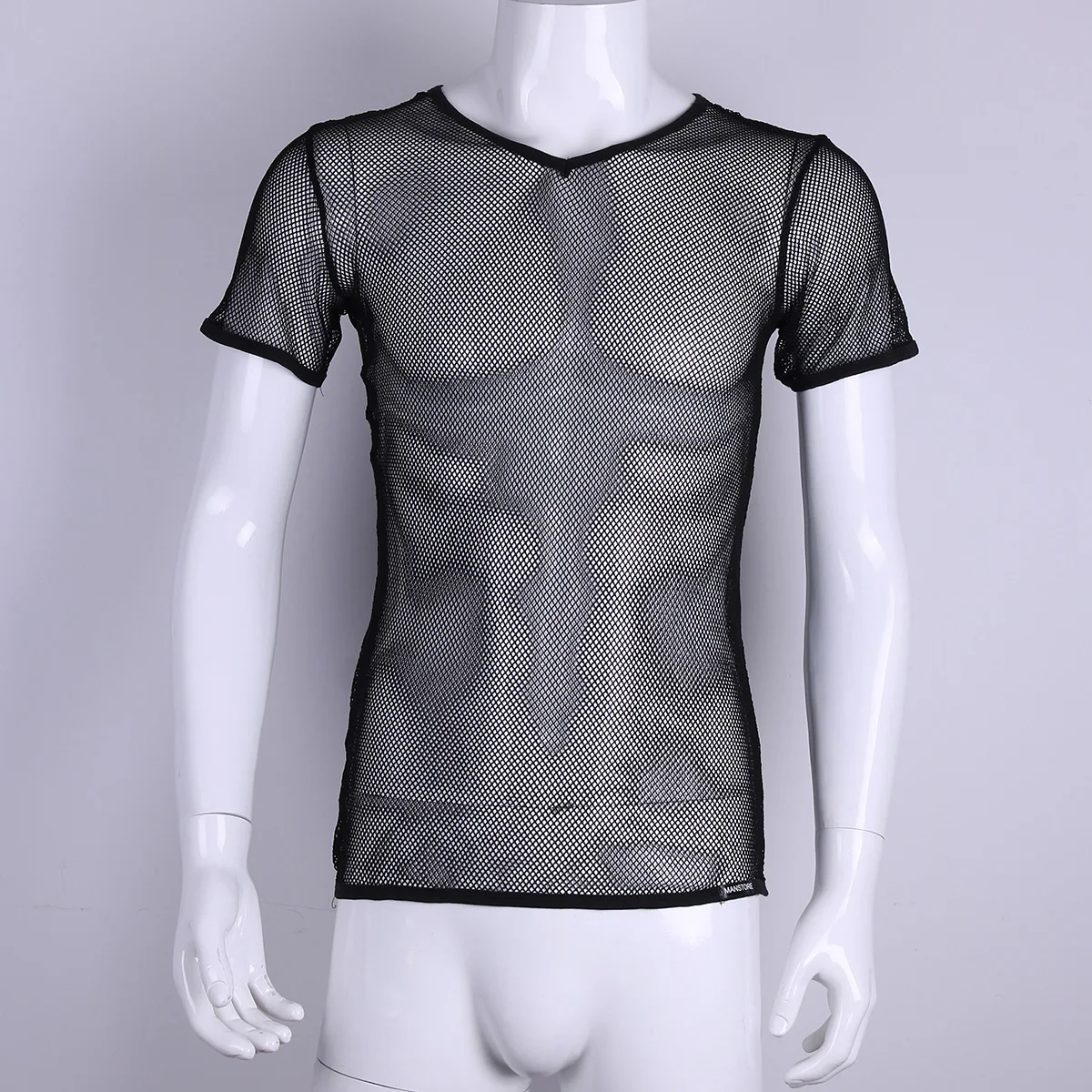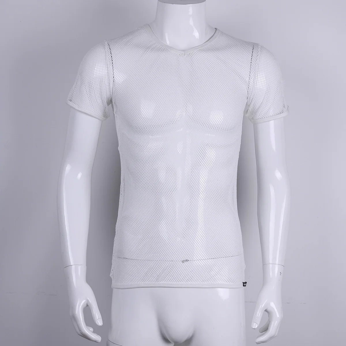 Hot sexy mens casual stylish mesh shirts, V-neck, short sleeves.