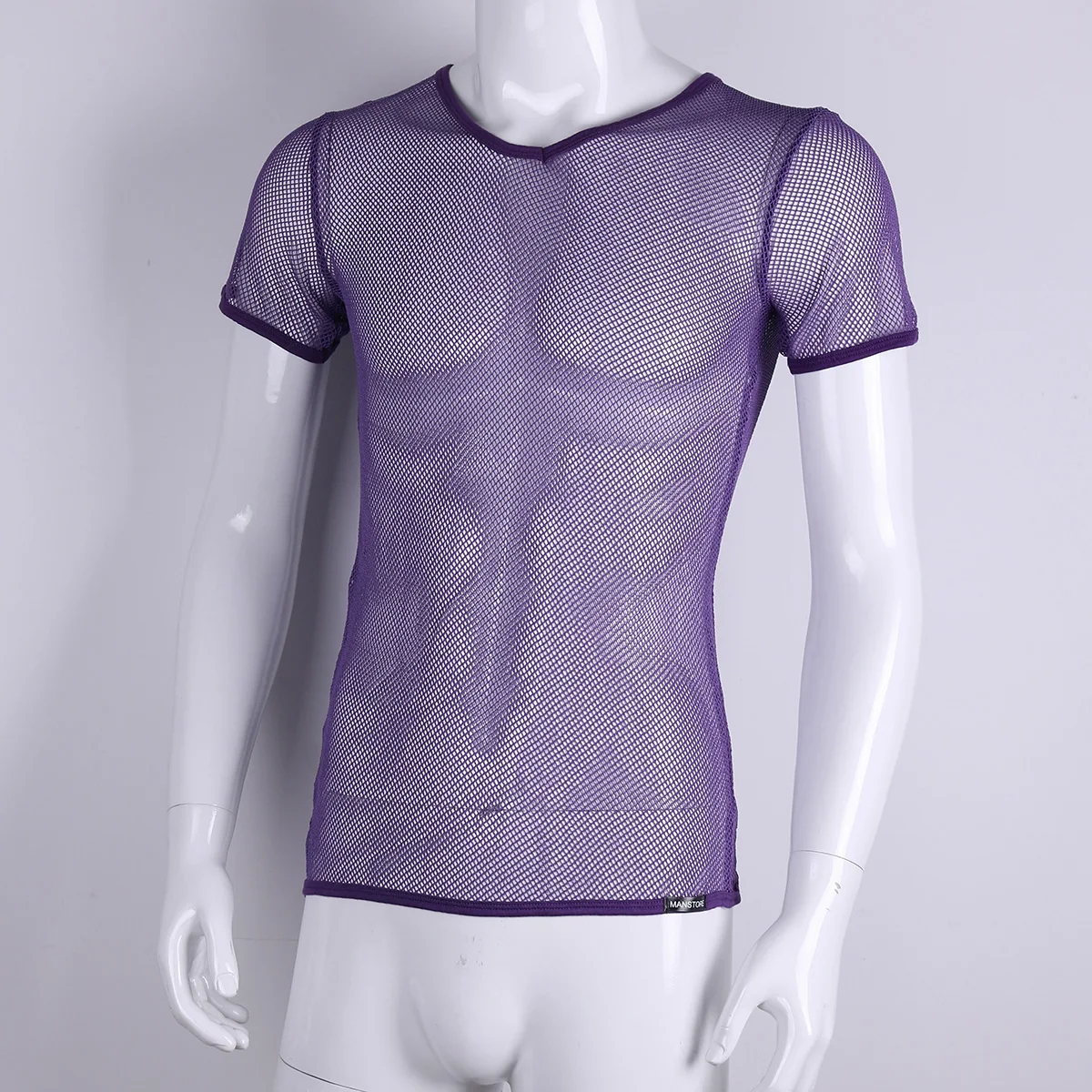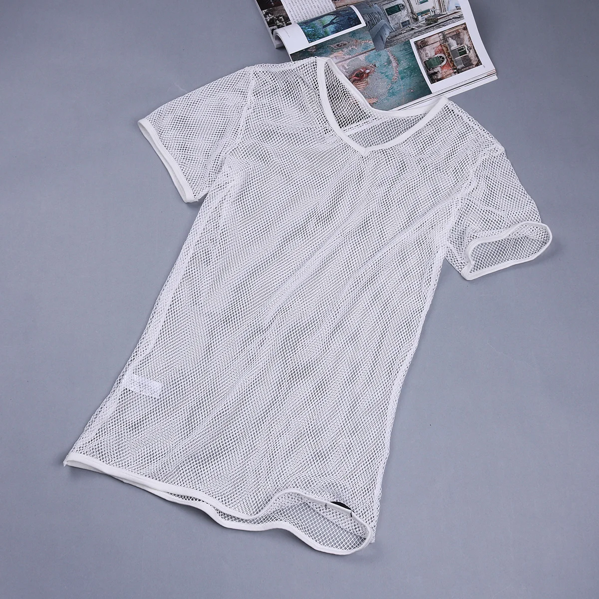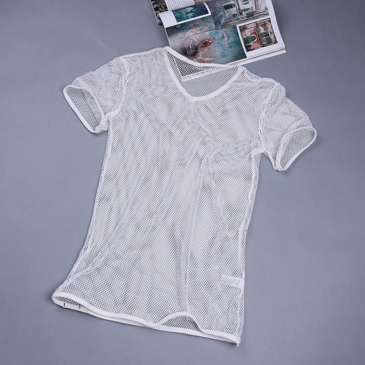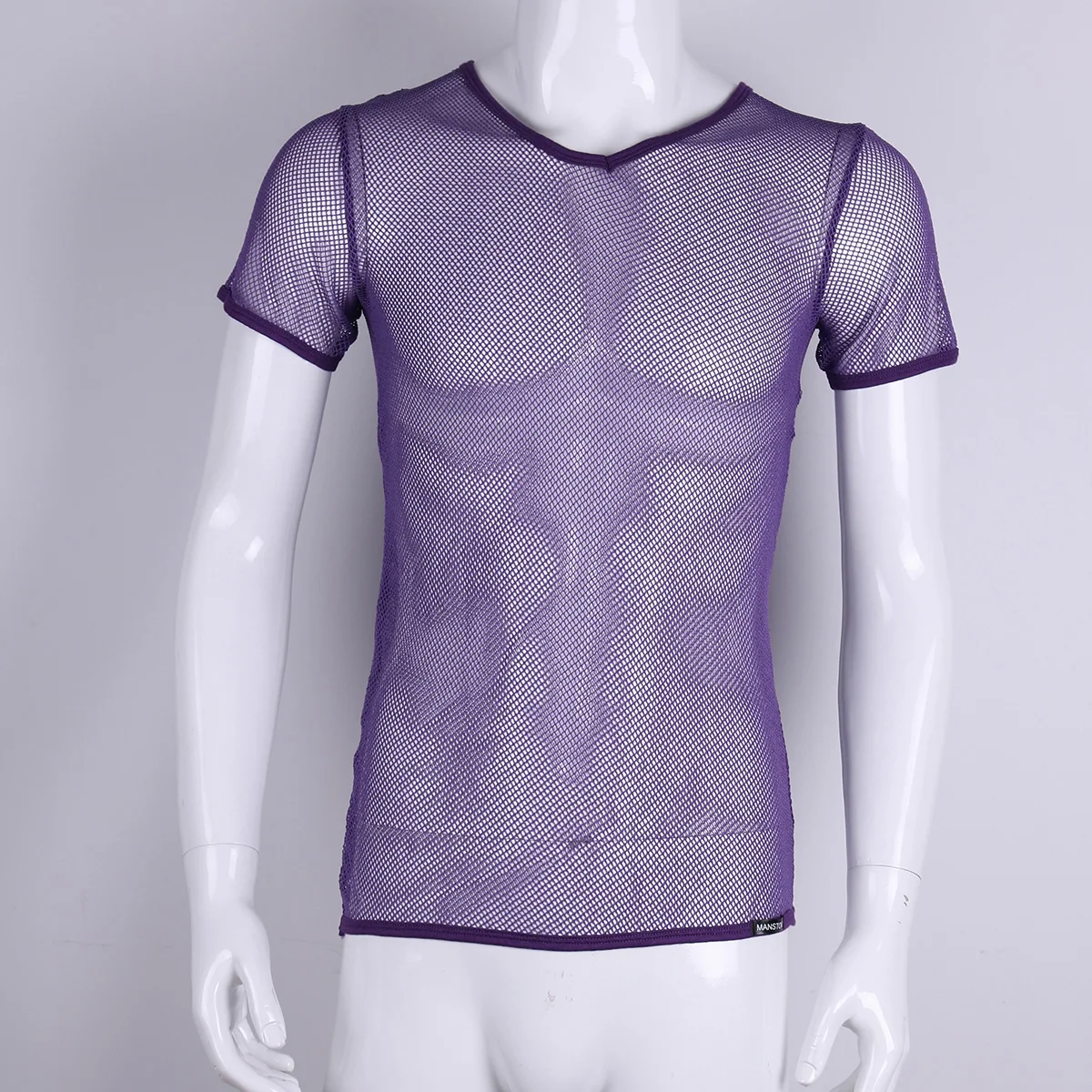 Hot sexy mens casual stylish mesh shirts, V-neck, short sleeves.