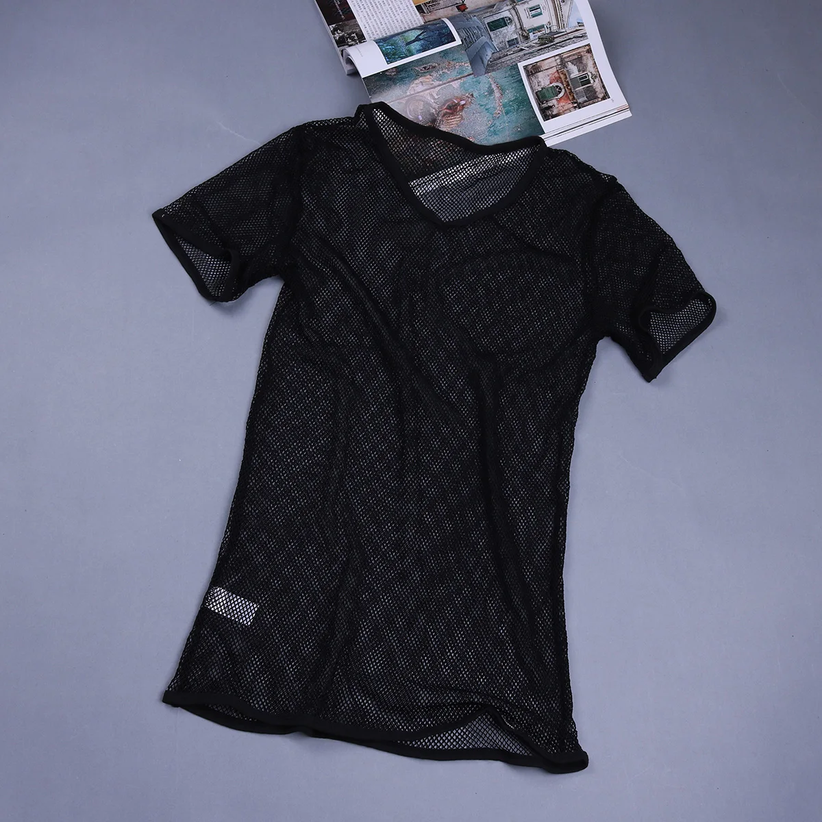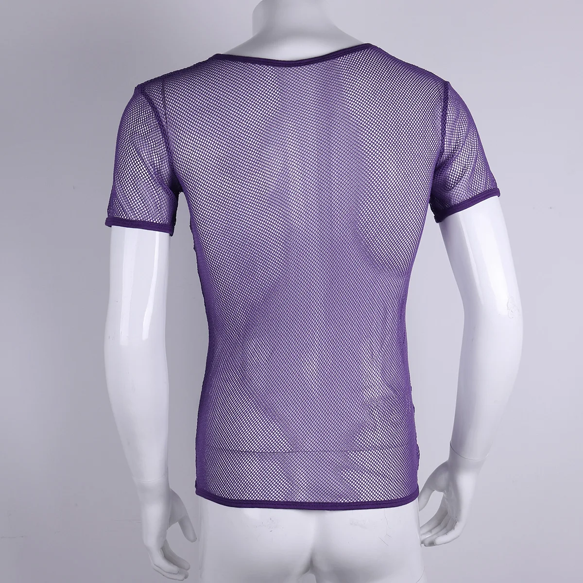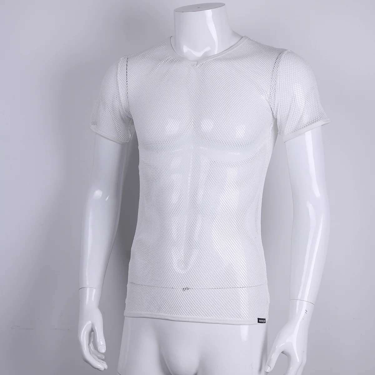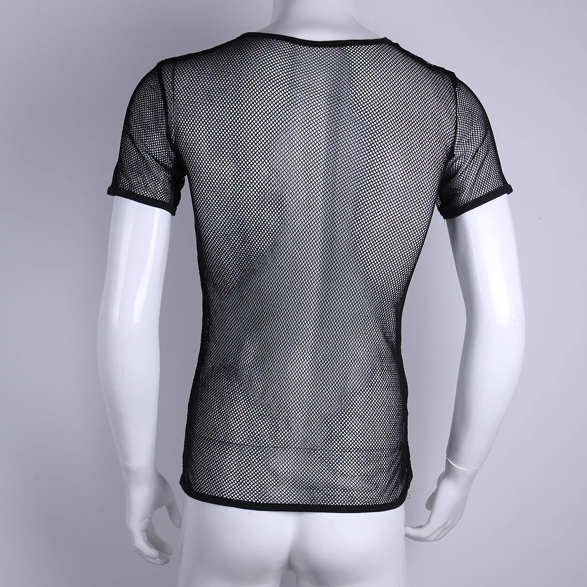 Hot sexy mens casual stylish mesh shirts, V-neck, short sleeves.