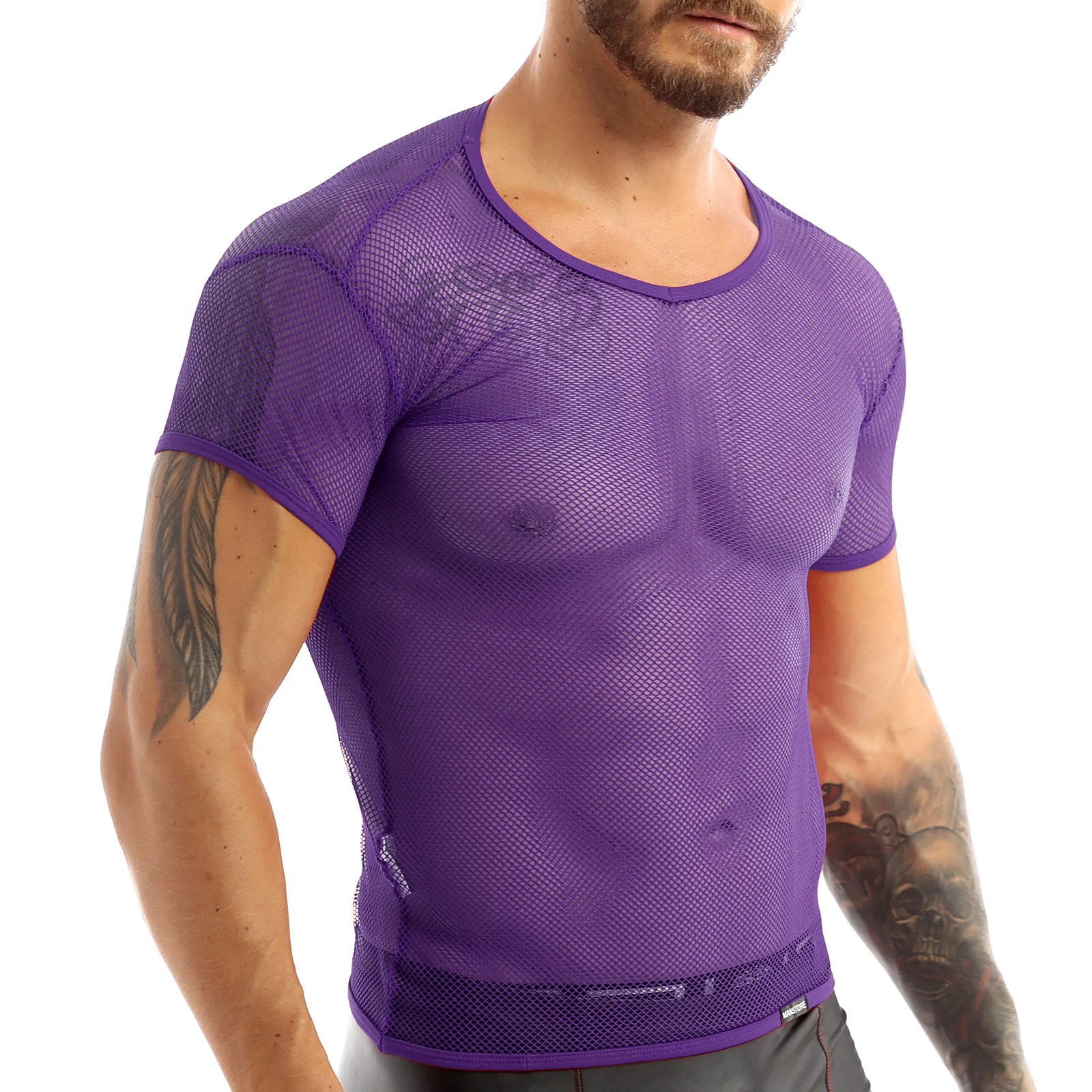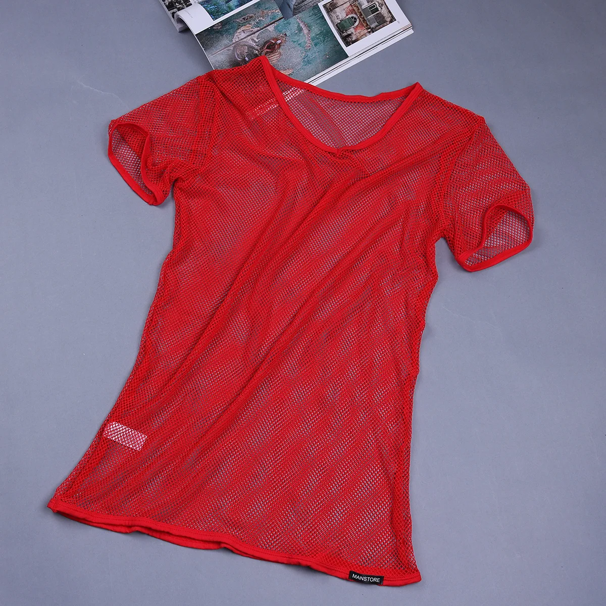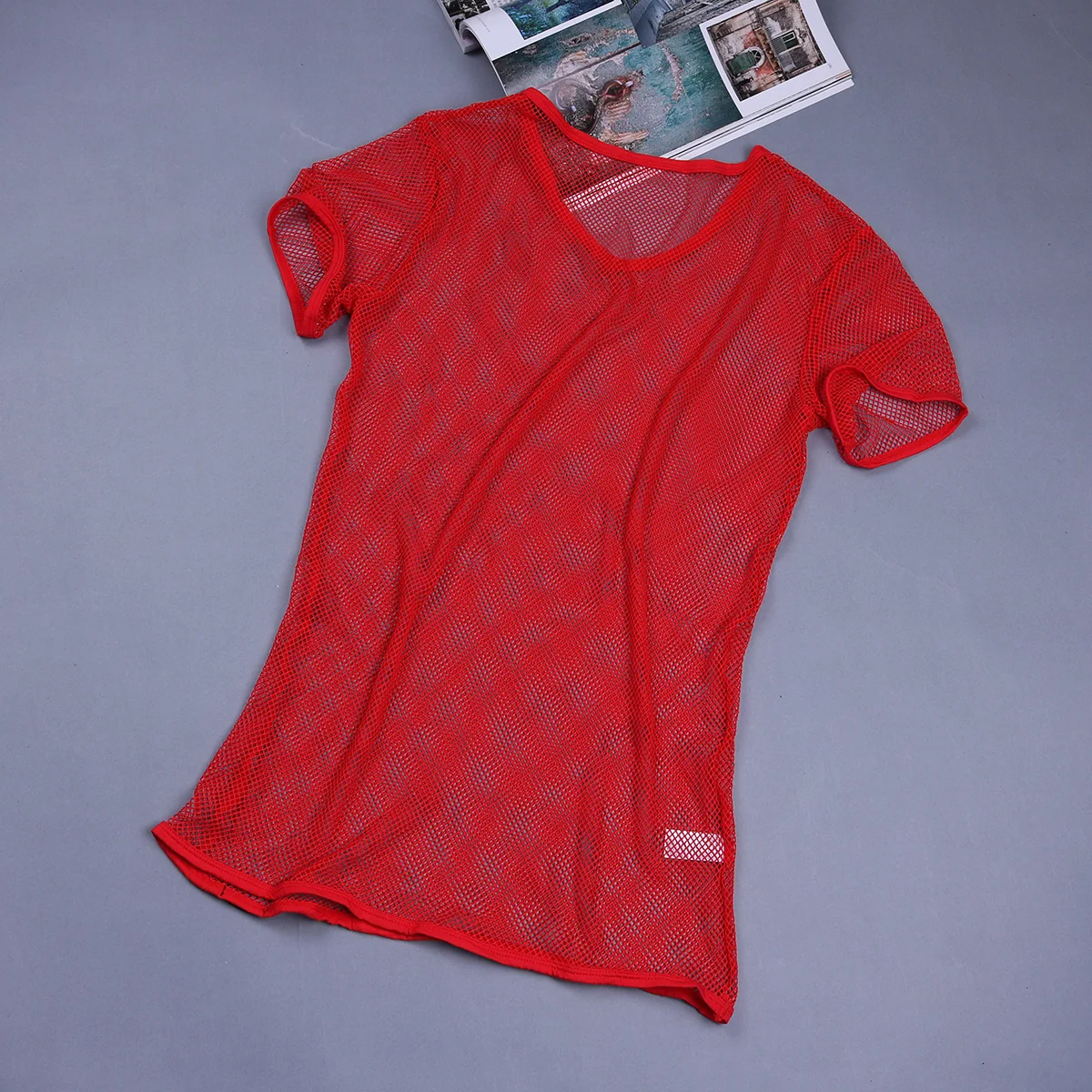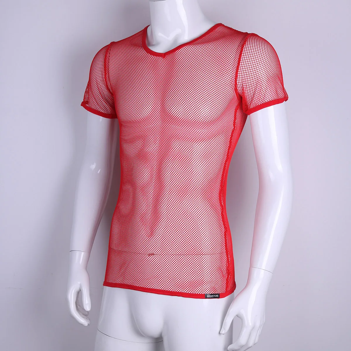 Hot sexy mens casual stylish mesh shirts, V-neck, short sleeves.