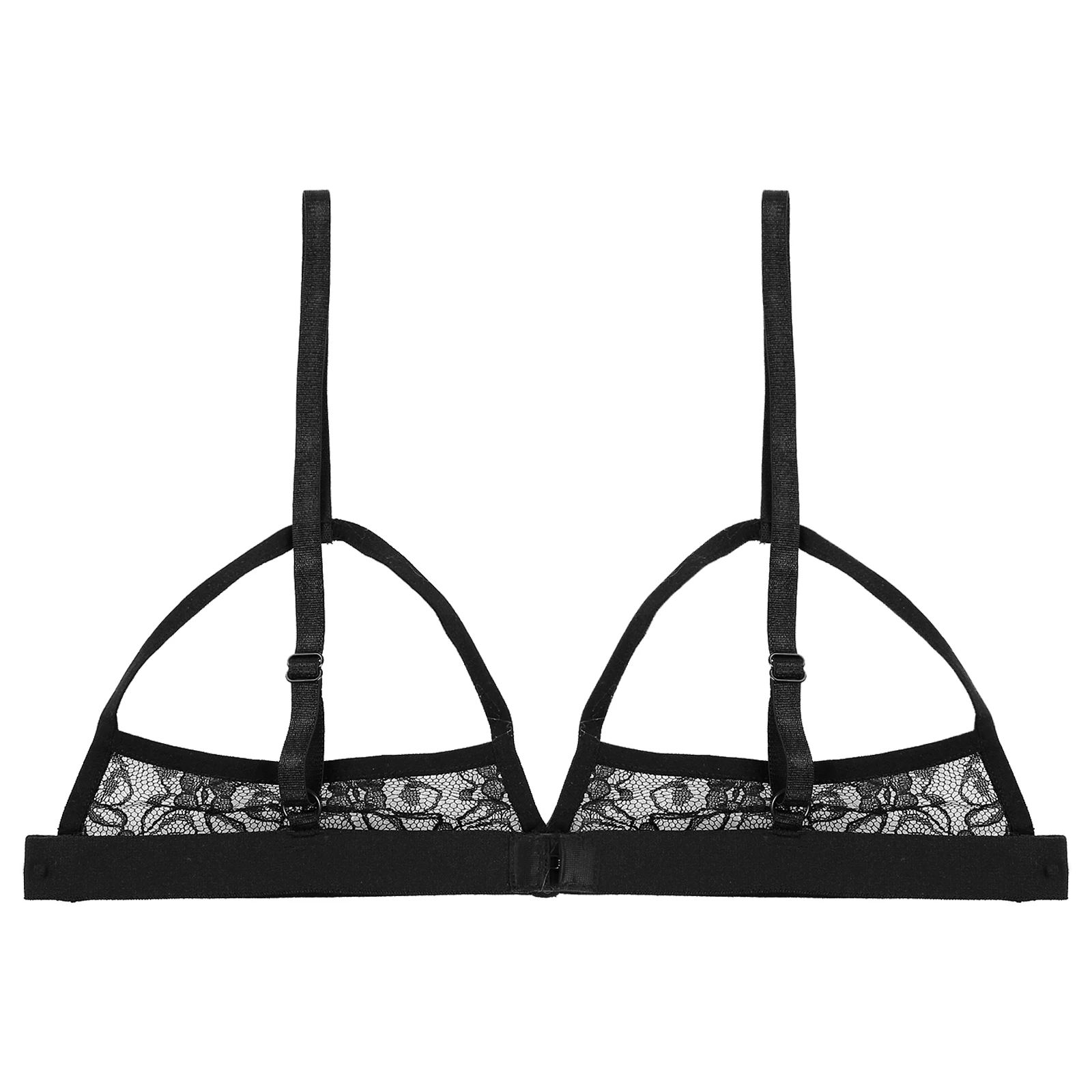 Sheer floral lace and hollow out cup design, makes you more attractive to your lover.